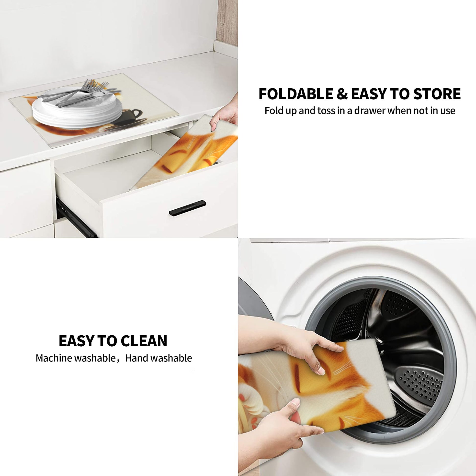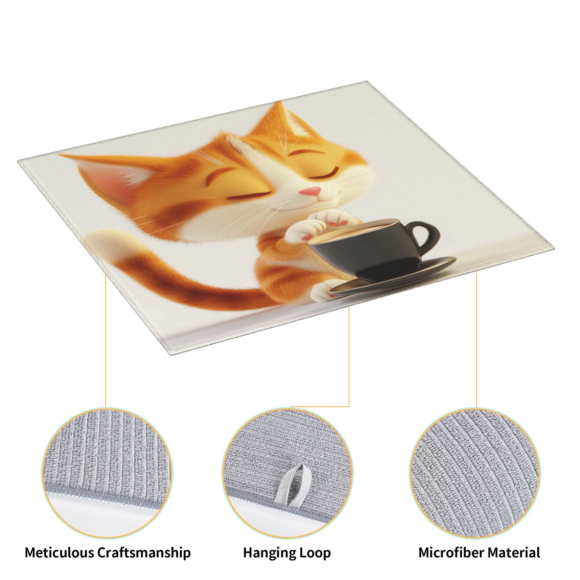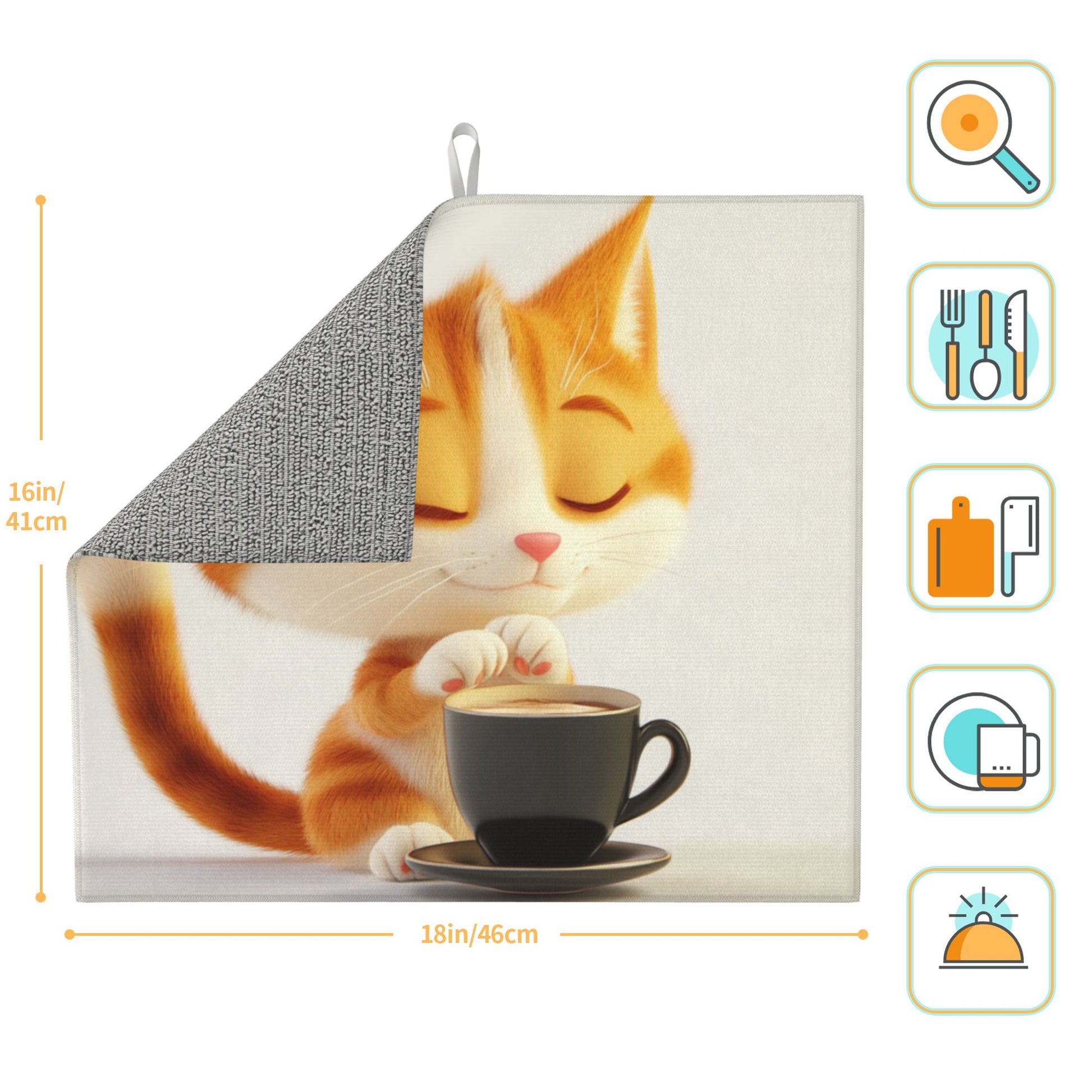 Cute Orange Cat Drinking Coffee Towel – Soft Microfiber Kitchen Cloth / Wall Hanging with Hanging Loop (16x24 in)