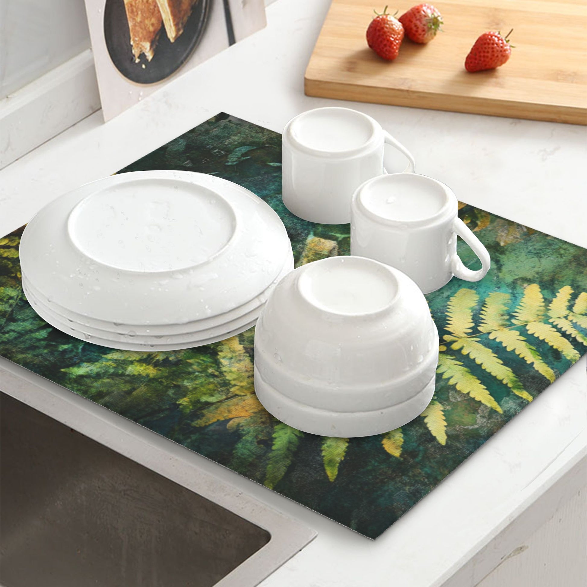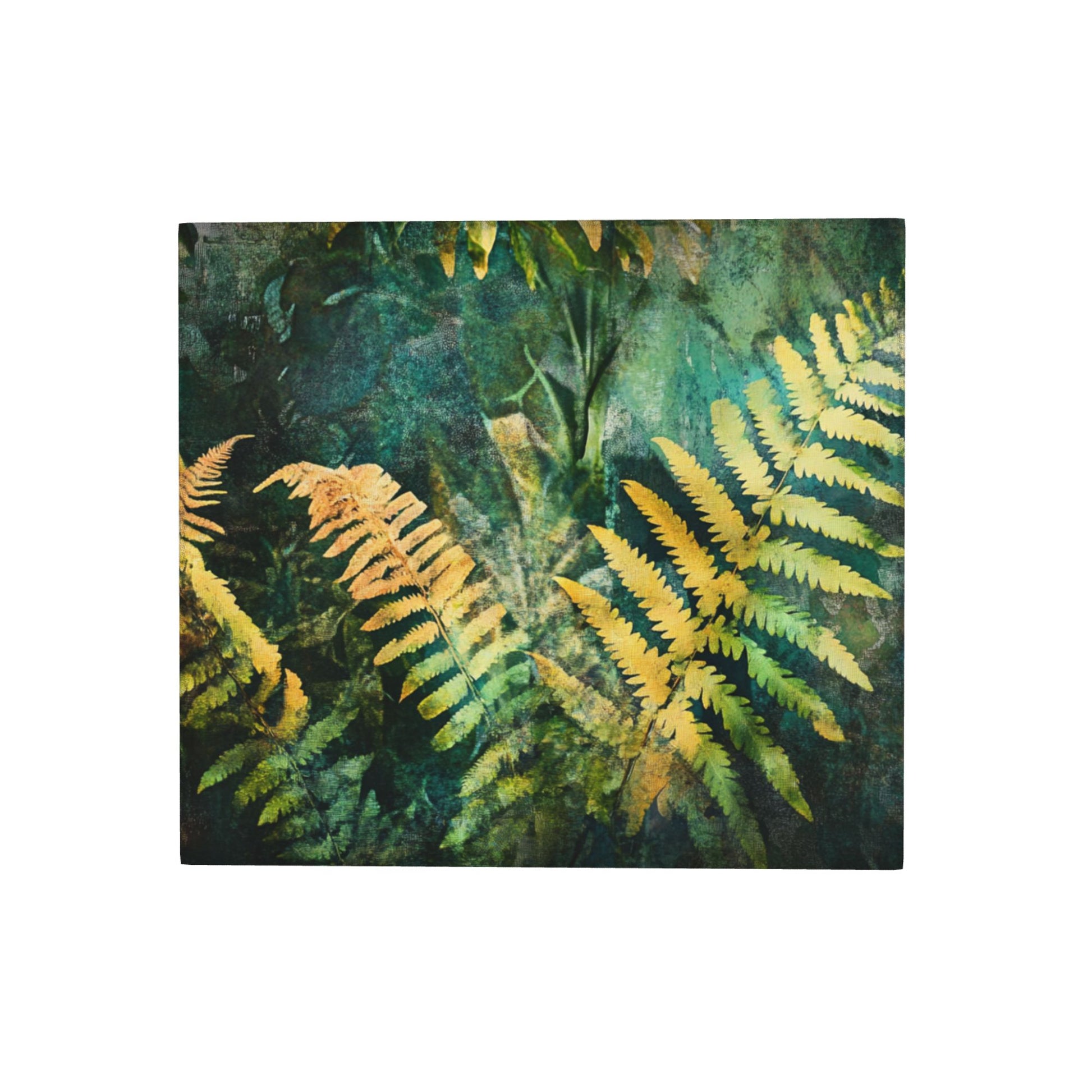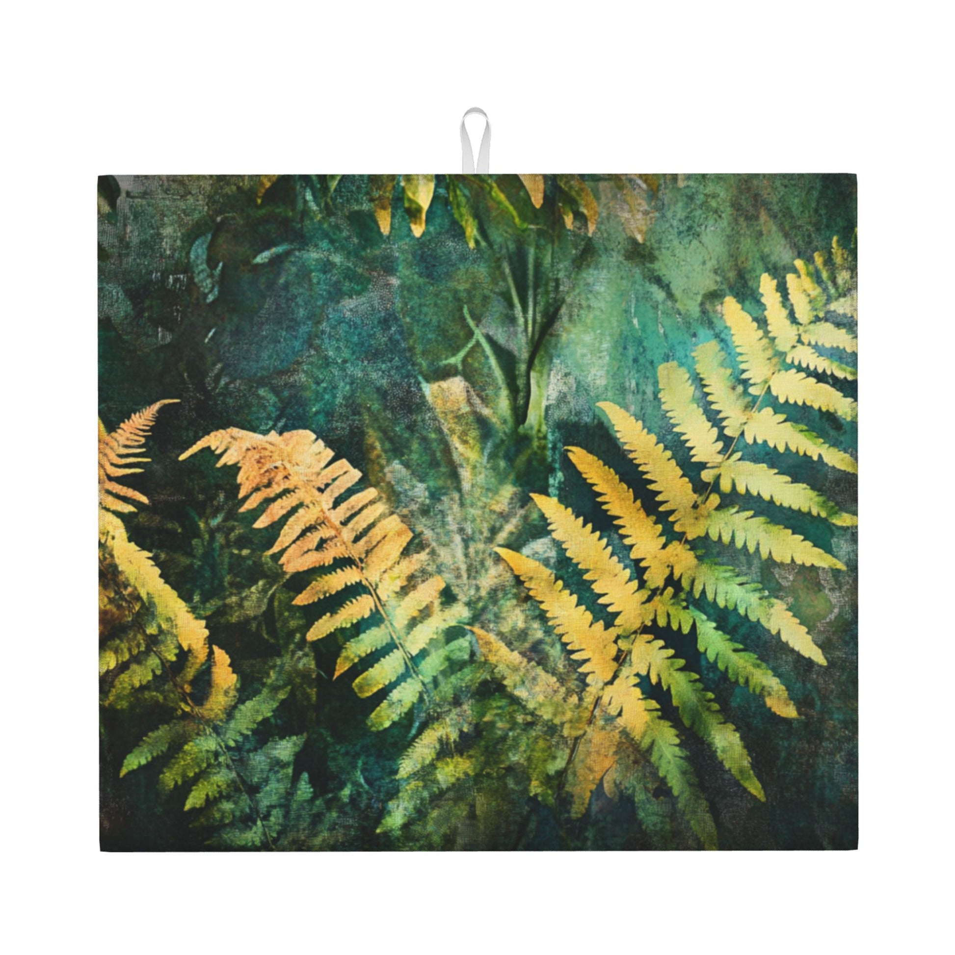 Immerse your space in a touch of wilderness with this forest fern print towel. Featuring a deep green rainforest-inspired background with golden fern leaves spreading across the surface, the design evokes tranquility, nature, and depth. Whether used in your kitchen as a drying towel or as a statement wall hanging, this piece adds a lush, artistic accent to your home.