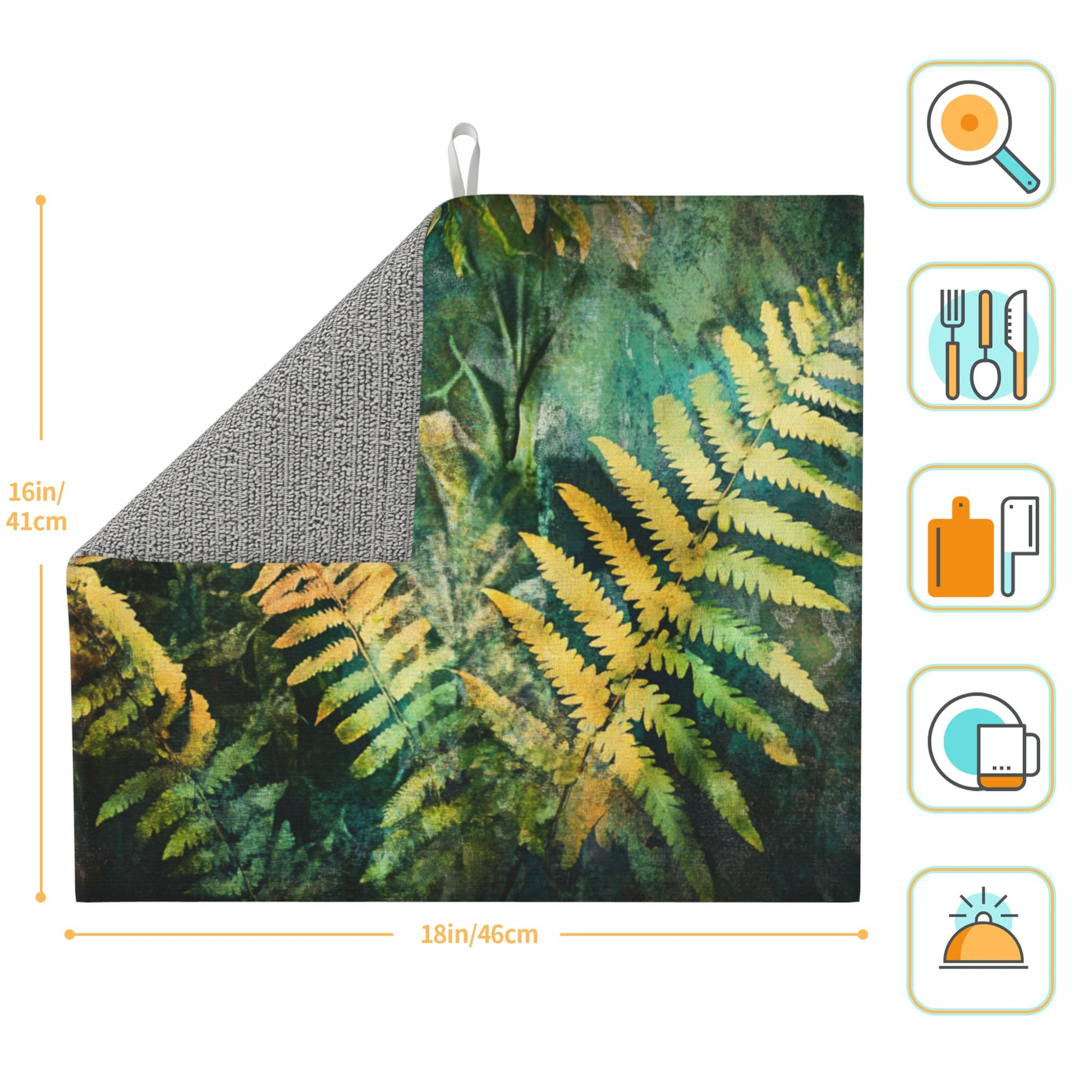 Forest Fern Print Kitchen Towel – Multi-Use Decorative Wall Cloth with Hanging Loop – Quick-Dry Microfiber (16x24 inches)