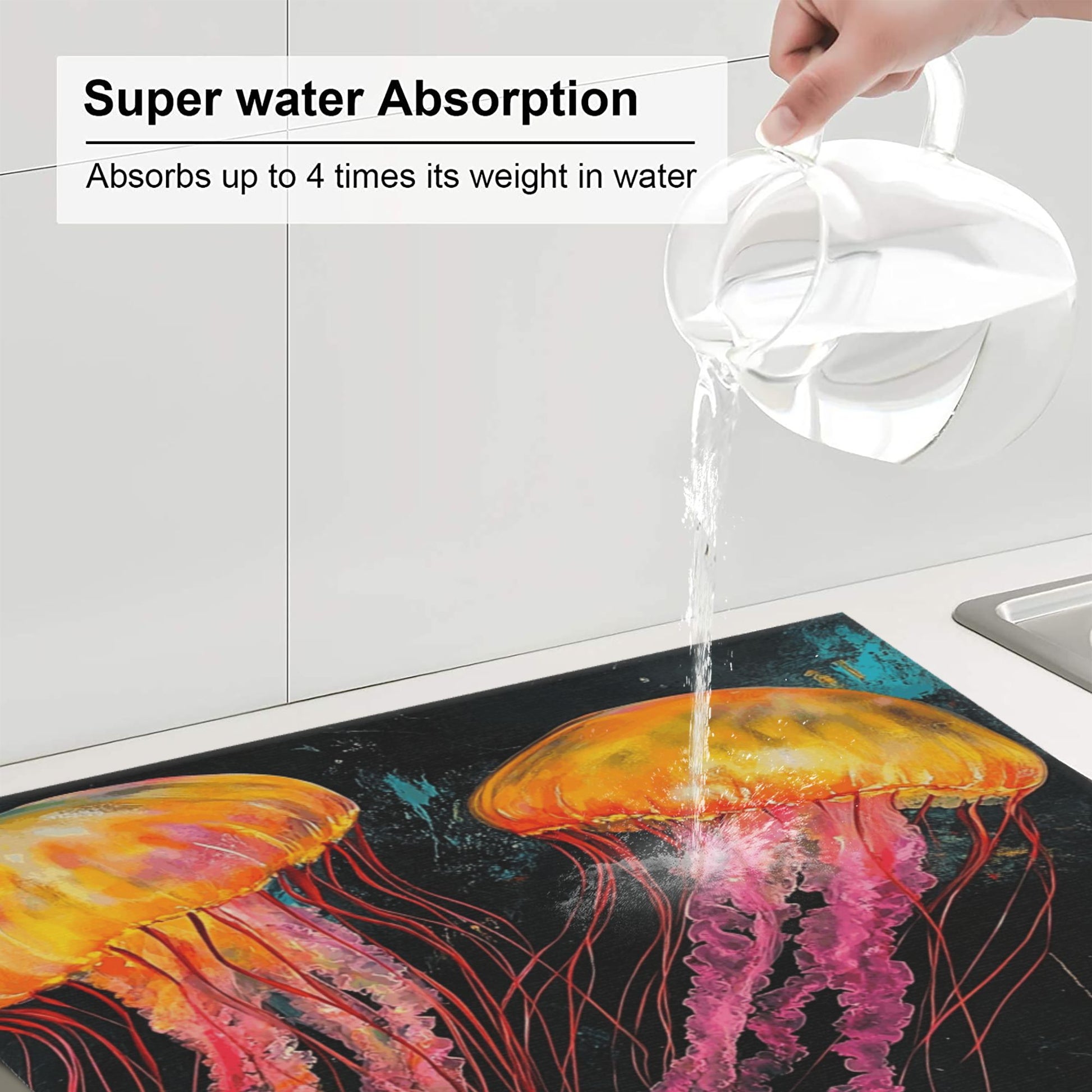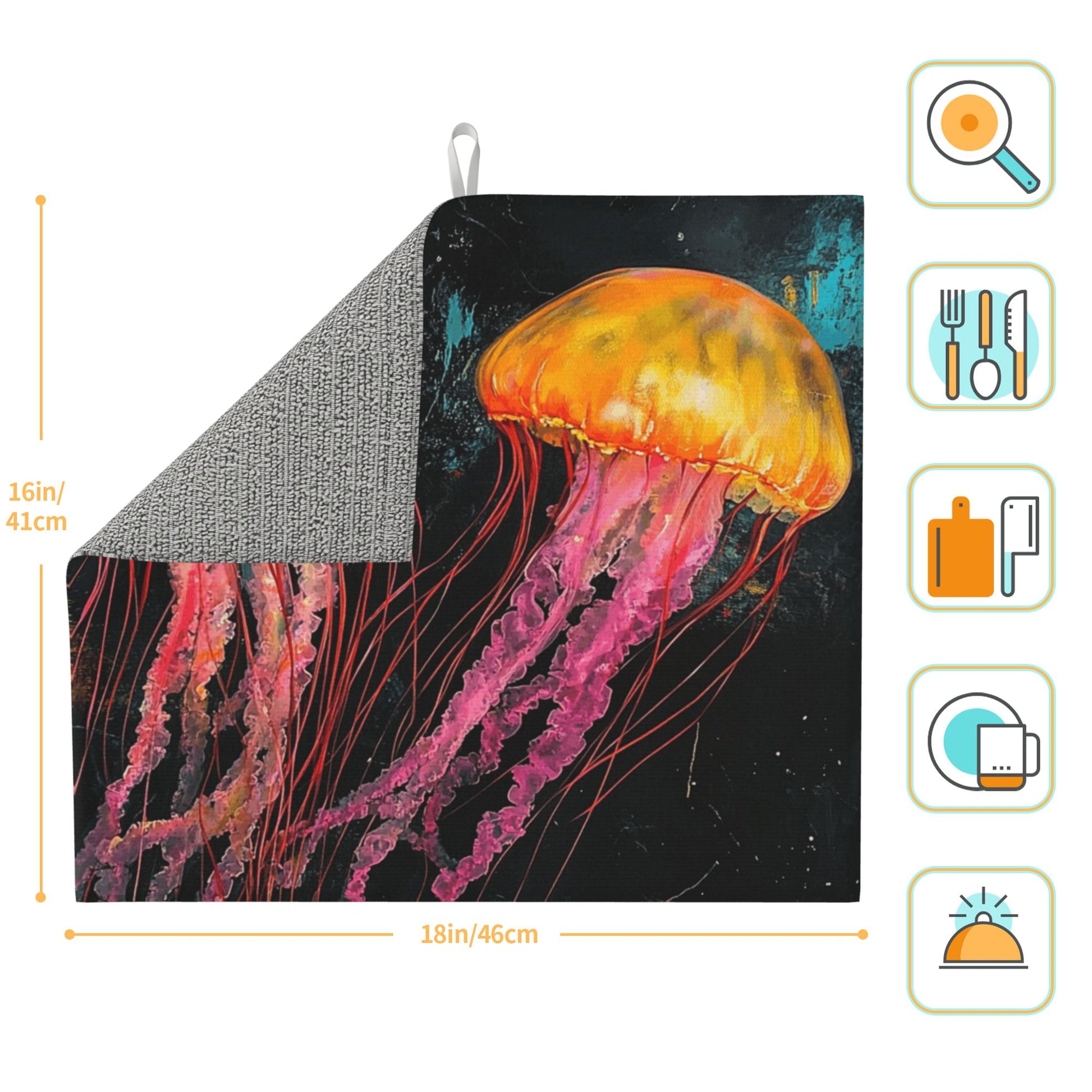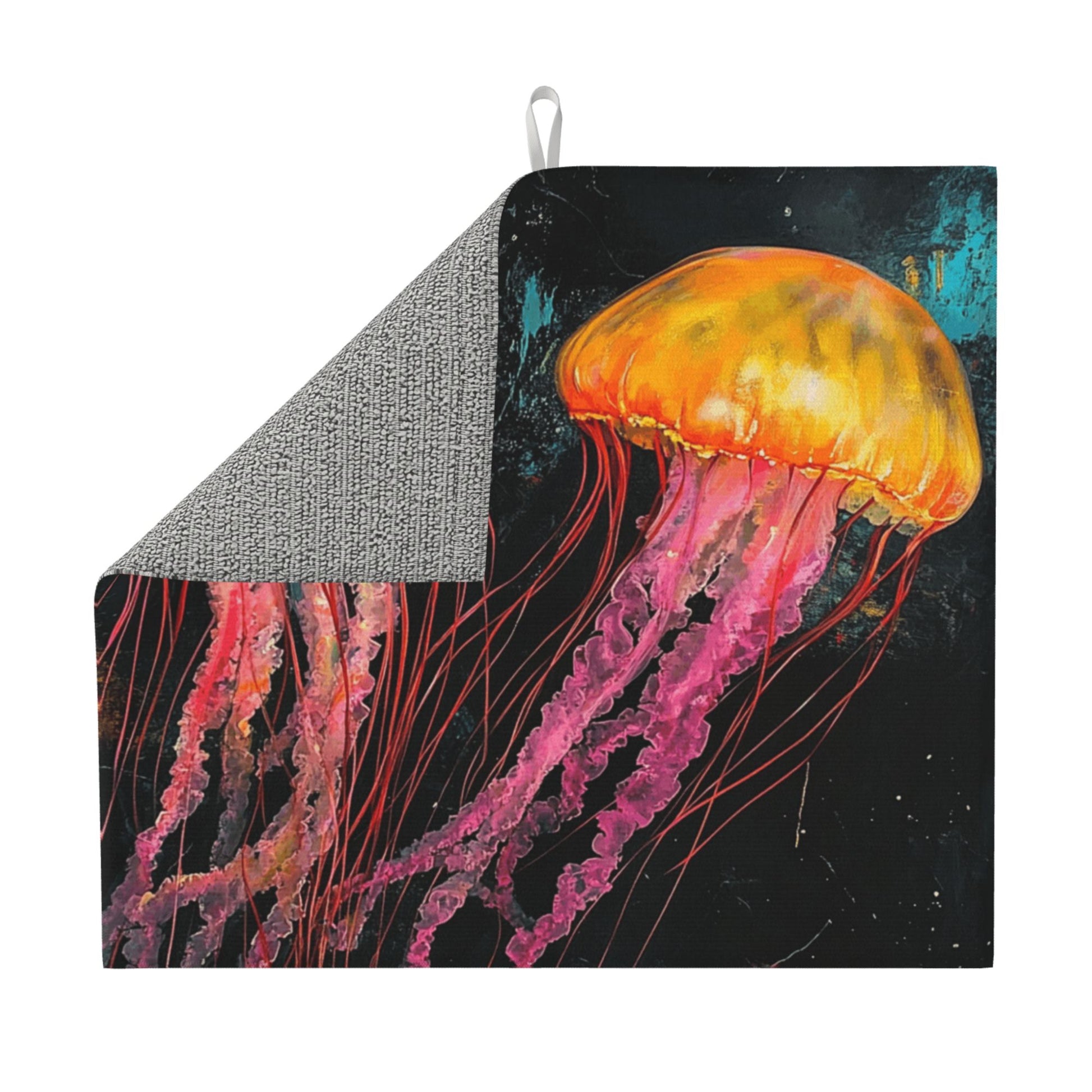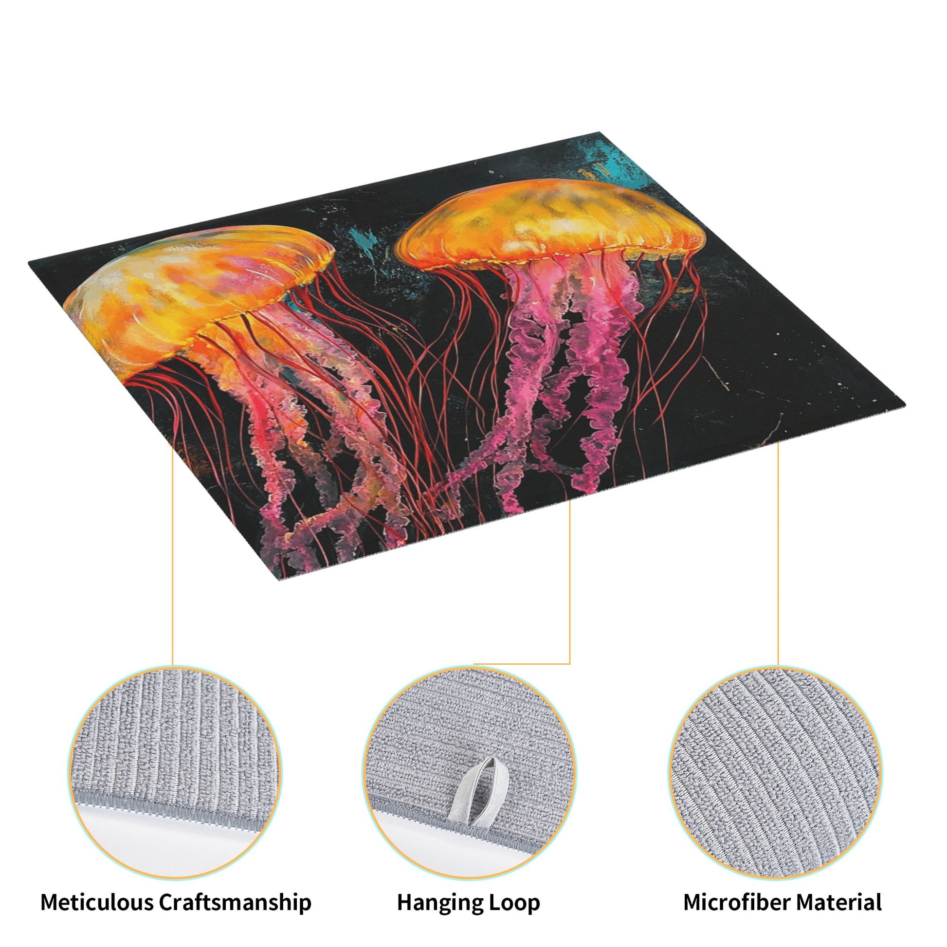 Jellyfish Print Kitchen Towel – Multi-Use Microfiber Hanging Cloth – Bold Marine Wall Art & Quick-Dry Towel (16x24 inches)